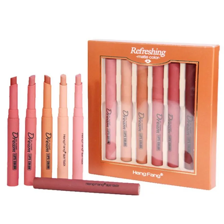HENG FANG Set OF 6 - Waterproof Matte Color Makeup Lipsticks.