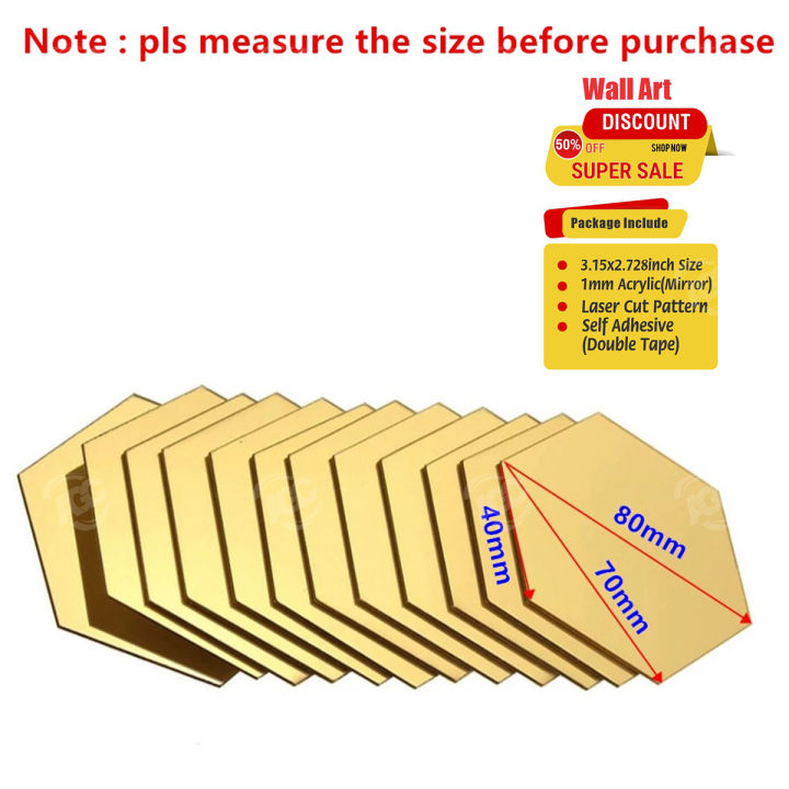Hexagon Mirror Wall Stickers Acrylic Self Adhesive Mosaic Tiles Sticker Decals Gold for DIY Bedroom Bathroom Home DecorAcrylic Golden Mirror Wall Art 6/12/24/48/72/96 Pcs Antique Gifts Center