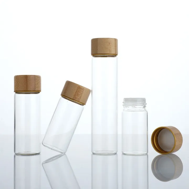 High Quality Dispensing Bottles Glass Sealed Spice Jars with Wood Lids Storage Tool Food Storage Sealing Jar Transparent Storage Tank Glass Storage Bottle