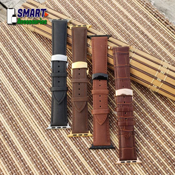 HIgh Quality Genuine Leather Watch Band Strap With Stainless Steel Butterfly Buckle Compatible With Appl Watch All Series 1, 2, 3, 4 and 5