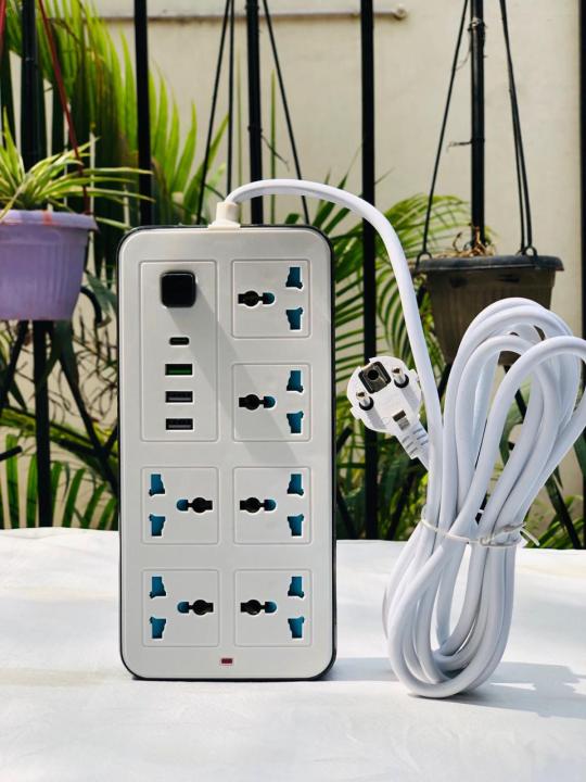 High Quality three shoo /power strip extension board 6 Sockets + 3 USB + 1 Type-C Port, 2000W Load capacity, 9.5 Feet Heavy Duty Copper Wire, Wide Space, Strong Grip, On-board Indication Light, Ideal for Home and Office Use