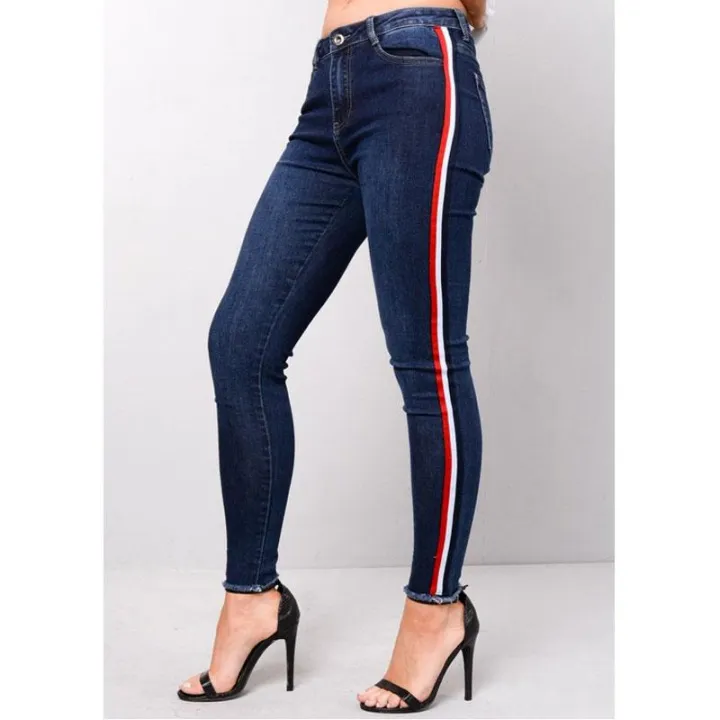 high waisted side stripe skinny denim jeans blue