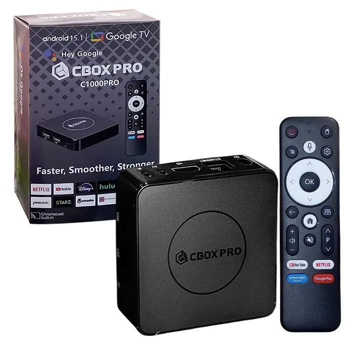 【Highly Recommended】CBOX C1000 Android TV BOX | Original 2GB RAM & 16GB ROM (Showing 8GB +128GB)| Android 15 | 4K Resolution | Bluetooth voice Remote | Free Lifetime IPTV Including Live TV Channels, Movies, & Webseries | Set top Box Smart TV by Al-Buraq