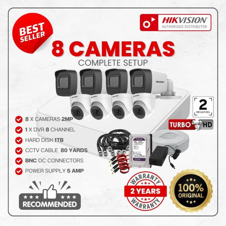 HIKVISION 8 CCTV Cameras Package (4*16DOT-EXIPF & 4*76DOT-EXIPF-1080P-2MP) - 1000GB HDD-Hikvision8 channel 7108HGHI-K1DVR-3Power Supplies12V/5amp-General cable 80y