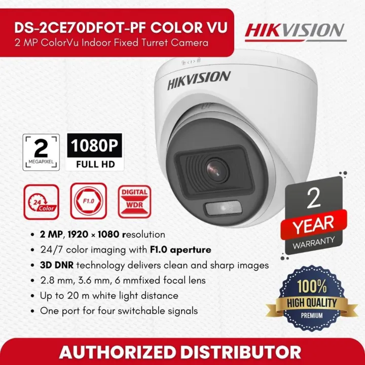 HIKVISION DS-2CE70DF0T-PF 2 MP ColorVu Indoor Fixed Turret Camera- Turbo HD Products Turbo HD Cameras Turbo HD Cameras with ColorVu-High quality imaging with 2 MP, 1920 × 1080 resolution Camera-24/7 color imaging camera