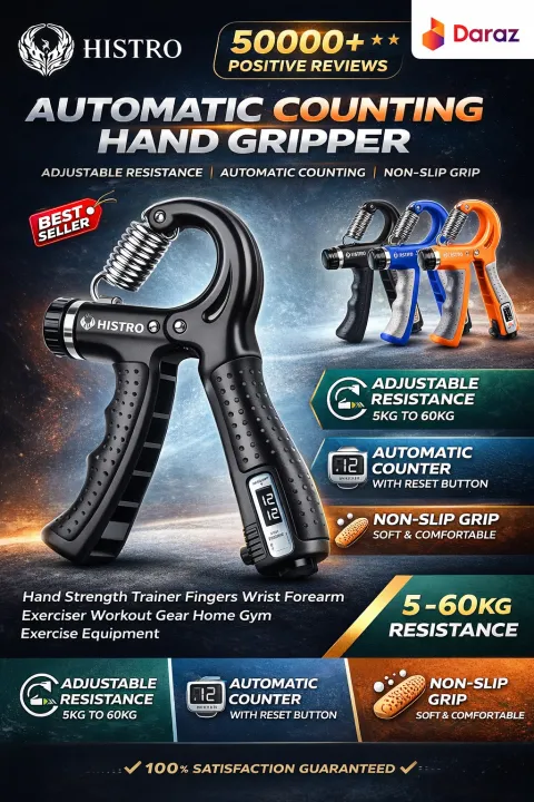 HISTRO 5-60 kg Plastic Hand Grip Strengthener – Adjustable Grip Strength Trainer with Stainless Steel Spring for Strong Wrists, Fingers, Forearm, Hands and Rehabilitation Exercise Hand Gripper Adjustable Resistance Automatic Counting Non-Slip Hand Grip