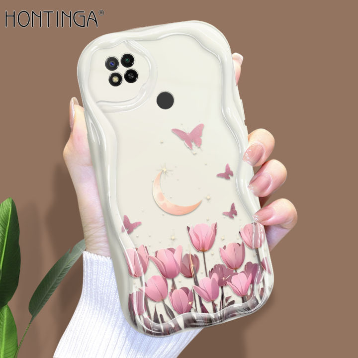Hontinga for Redmi 9C 10A Back Cover Tulip Butterfly Phone Case Texture Wavy Edge Soft Mobile Cover
