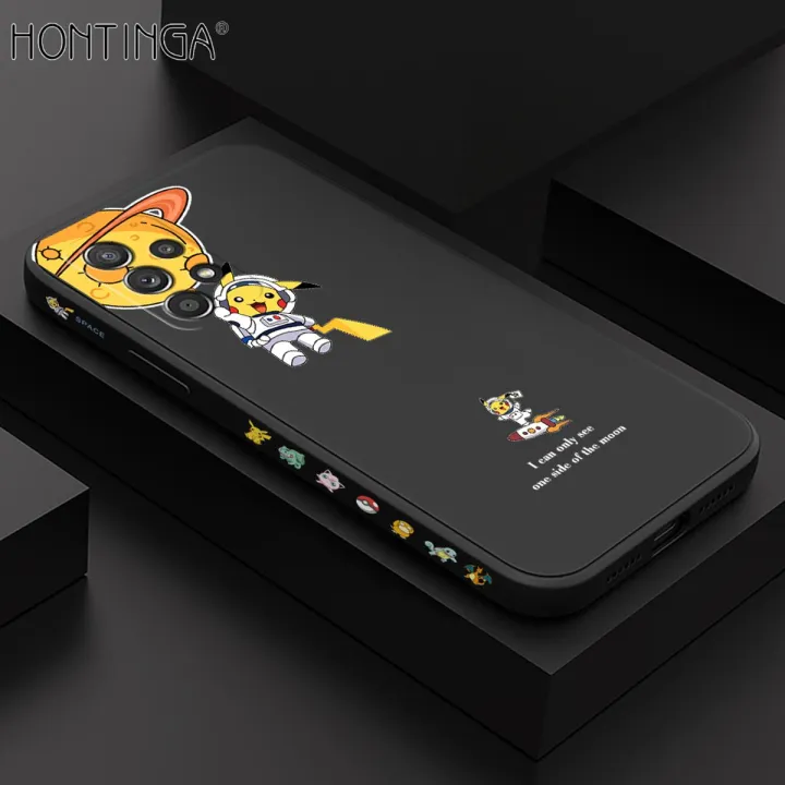 Hontinga for Samsung Galaxy A52 5G Case Side Design Phone Cover Cute Astronaut Pikachu Cover Square Edge Pattern Liquid Silicone Trend Case