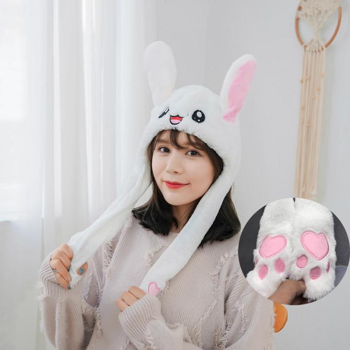 【HOT】 1PC Rabbit Hat Plush Can Moving Bunny Ears Hat For Kids Adult Girlfriend Bunny Plush Cap Winter Hat