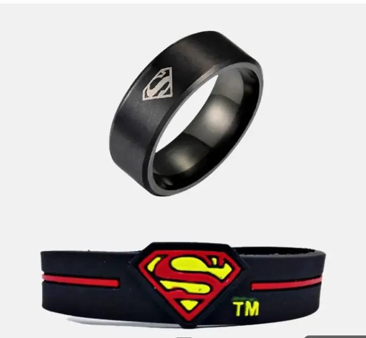 HOT SALE BLACK STAINLESS STEEL SUPERMAN LOGO RIN WITH FREE SUPERMAN BAND FOR BOY AND MEN