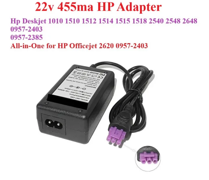 HP 22V 455mA AC Adapter | Charger for HP Deskjet & Officejet Printers | Printer power adapter for HP Deskjet 1010, 1510, 2540, 2648 | Printer Power Supply Models 0957-2403, 0957-2385