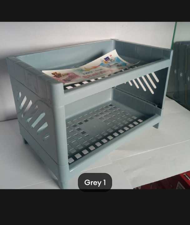 HTS Plastic Double Layer Foldable Storage Rack Desktop Stationery Organizer Accessories Office School Supplies Organizers