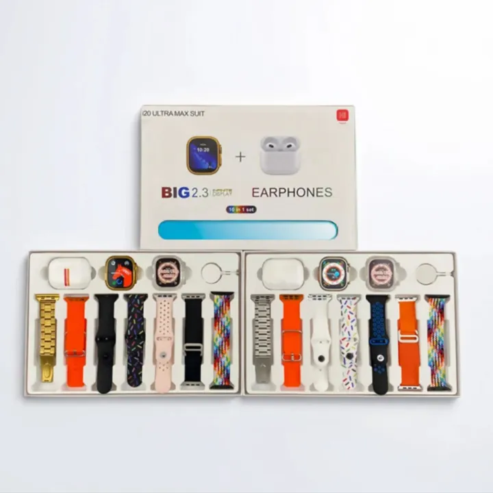 I20 Ultra Max Smart Watch Bundle - 2.3" Screen, 7 Straps, AirPods 2 Included, Bluetooth Calling, Android/iOS Compatible