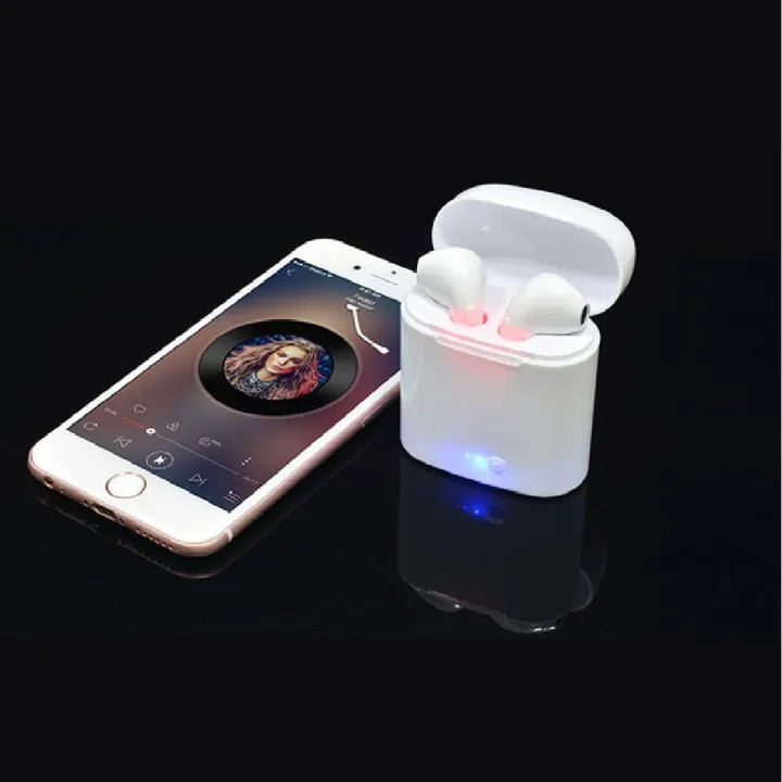 i7 tws Stereo Bluetooth Earphone Wireless Earbuds with Power Bank Wireless Music mini Handsfree for Car Drive & Sports earphone - White