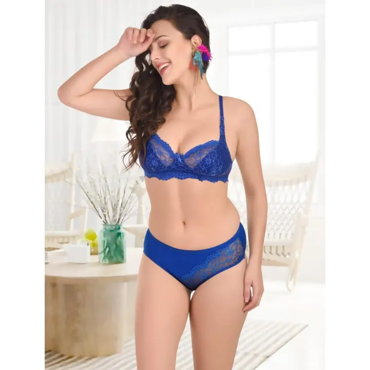 Imported Blue Bra and Pantie Set For Women - Classic Bras set for Women - Ladies Bras - Sexy Bras Undergarments for woman - Casual Bras for Girls - Ladies Brazier and Pantie & Underwear