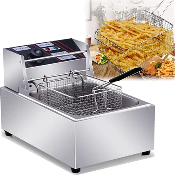impoted Electric Deep Fryer 6L Stove Single Cylinder Imported Commercial Home Kitchen Frying Chip Cooker French Fries Machine 2800w Commercial Double Tank Adjustable Temperature Control Stainless Steel Single Control Fried Chicken Fingers Nuggets