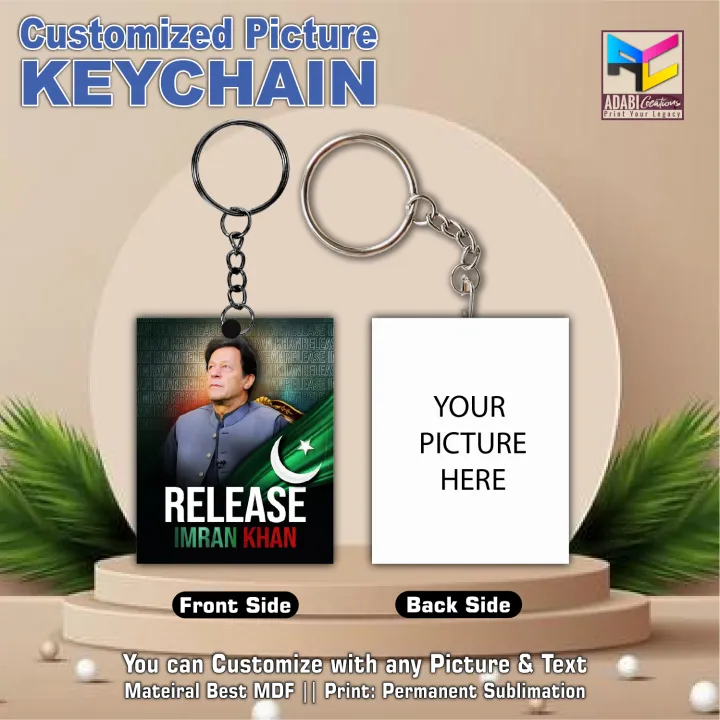 Imran Khan Customized Picture Keychain, Best quality MDF Keychain personalized with Your Own Photo, Double Side Printed Premium Quality Keychain Ring, Best Gift for Kaptan Lovers, Imran Khan PTI Qaidi-804 Keychain Design # 02