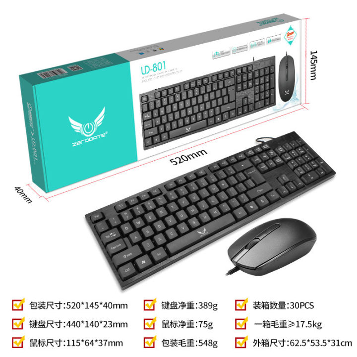 In Stock about Wired Keyboard and Mouse Suit 801 104 Key USB Socket Keyboard Office Mouse Lightweight Keyboard