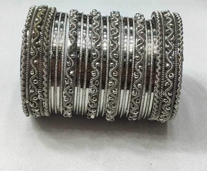 Indian Bridal Churiyan Metal Kangan Bangles Set - Silver