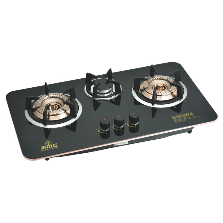 Indus 3 Burner Glass Hob With Imported Burners And Auto Ignition HG-720 - Black
