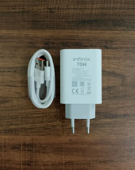 Infinix 70W Fast Charger with Type C Cable Genuine Adapter Compact Design