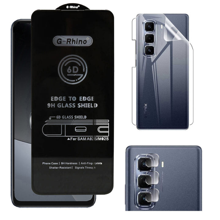 Infinix Hot 50 Pro Ultra HD Plus OG Glass Protector Premium Anti Scratch Glass + Transparent Back Jelly Protector Clear Soft Film Cover + Crystal Clear 9H Gorilla Flexible Back Camera Protection For Hot 50 Pro