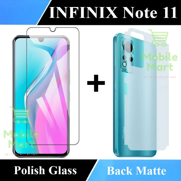 Infinix Note 11 Polish Glass Screen Protector + Back Matte Protector Fiber Carbon Soft Skin Sheet For Infinix Note 11