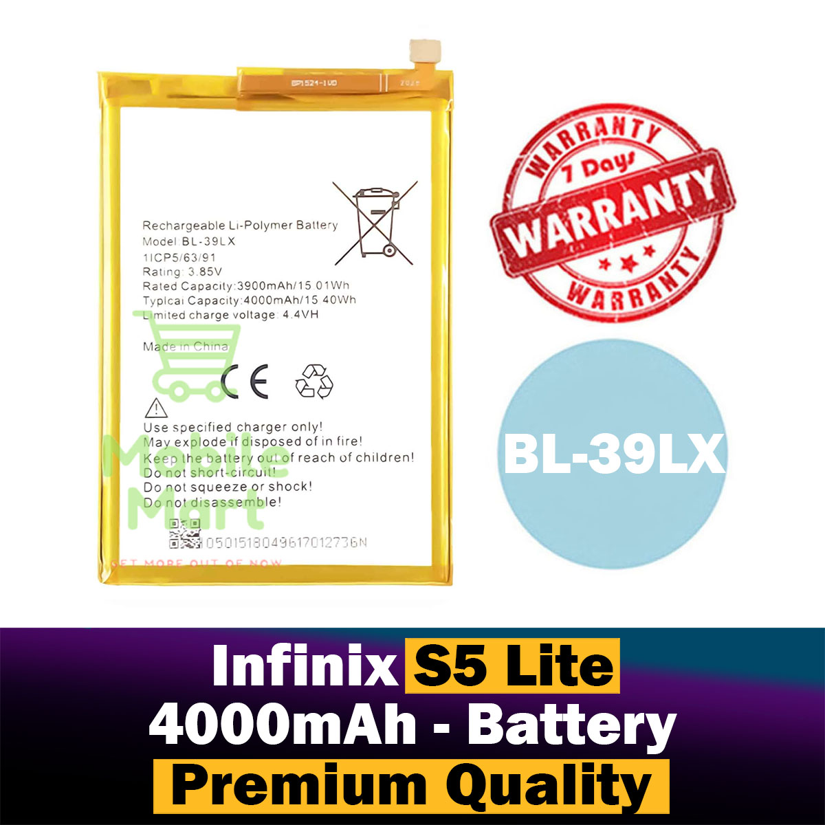 Infinix S5 Lite Battery BL-39LX Replacement Premium Quality 4000mah Battery For Infinix S5 Lite