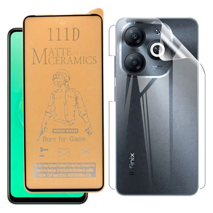 infinix Smart 8 Plus Ceramic Matte Protector PUBG Gaming Unbreakable Anti-shock Hybrid 9D/11D/21D Tempered Fiber Glass + Back Jelly Protector Clear Soft Protection Film Hydrogel Film Protector For Infinix Smart 8 Plus - EasyToBuy