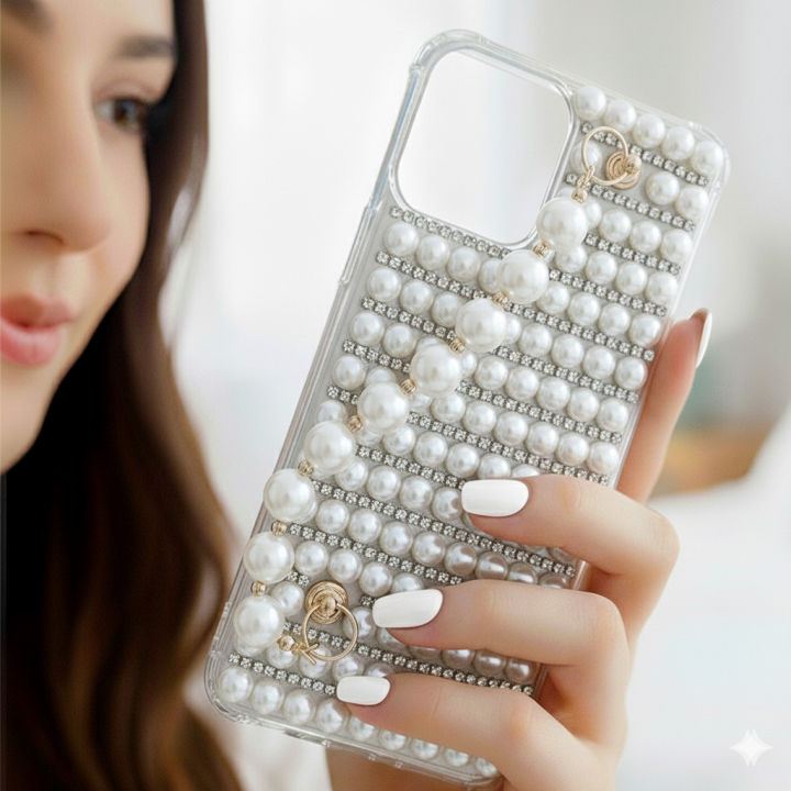 Infinix%20Smart%209%20Back%20Cover%20for%20Girls%20Luxury%20White%20Pearl%20&%20Rhinestone%20Clear%20Case%20%7C%203D%20Bling%20Diamond%20Studded%20Soft%20TPU%20%20Pouch%20Cover%20-%20Image%201