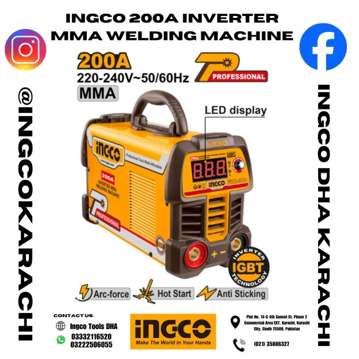 Ingco 200A Inverter MMA/TIG Lift Welding Machine ING-MMA200691