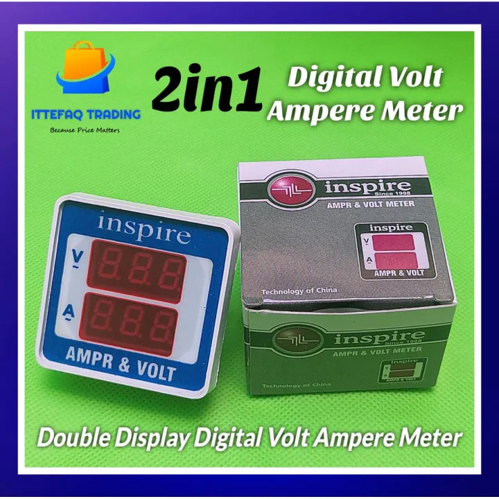INSPIRE 2in1 AC Digital Voltmeter Ampmeter Dual Display Digital Volt Ampere Meter LED Indicator Voltage Meter Mini Volt Amp Tester Panel Panel Meter