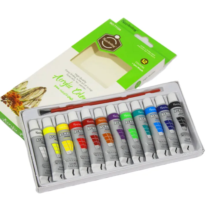 InstaOrder - 12 Pcs Acrylic Color Paint Set - 12x12ml Each Tube For Art, Craft, Calligraphy And Canvas - KeepSmiling