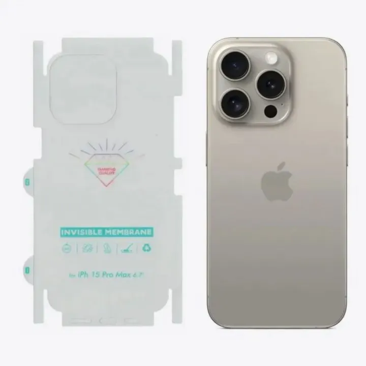 iPhone%2015%20Pro%20/%20iPhone%2015%20Pro%20Max%20-%20Back%20Transparent%20Matte%20Sheet%20with%20Logo%20Cut%20-%20Unbreakable%20membrane%20sheet%20for%20360%C2%B0%20Protection%20-%20Image%202