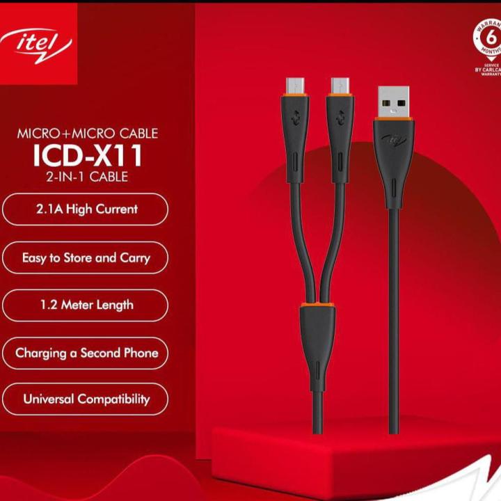 Itel 2-in-1 Multi Charging Cable ICD-X11 – Dual Micro USB to USB | 1.2M Extra Durable & Strong | 2.1A Fast Charging | Universal Compatibility with Android Smartphones, Tablets, Power Banks | Portable & Easy to Carry | High-Quality Charging Accessory