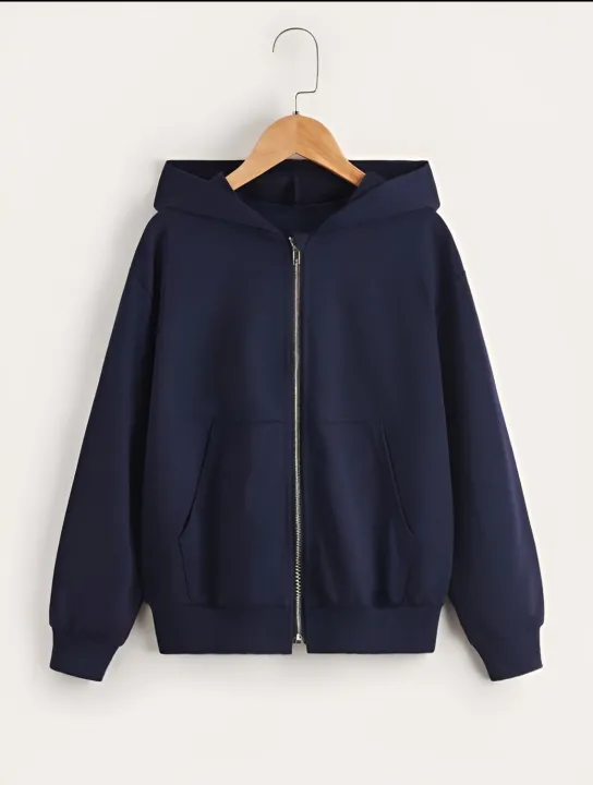 Jack beos Plain Navy Blue Zipper Hoodie For Men