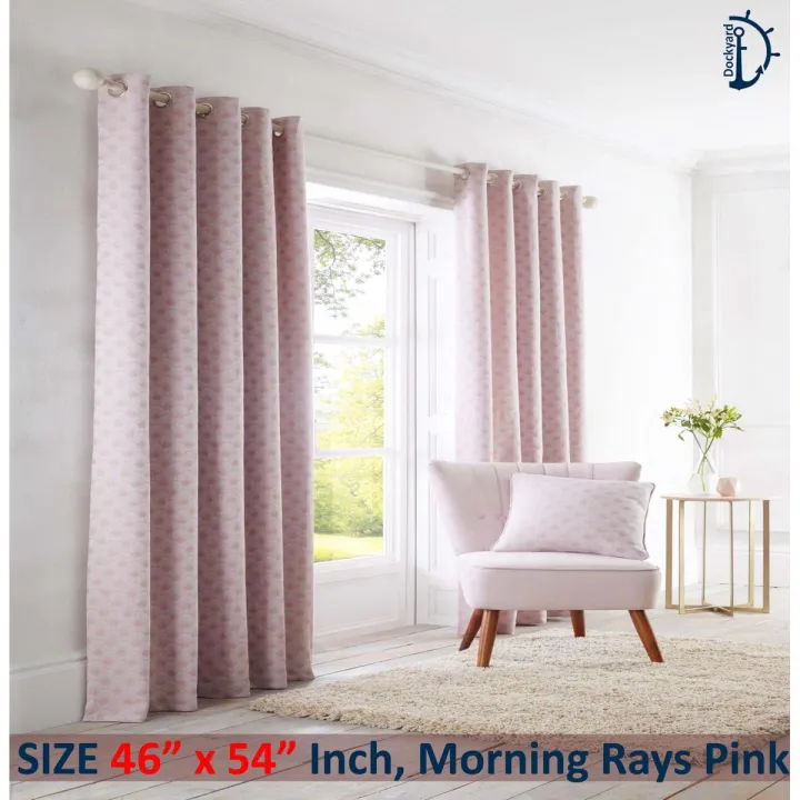 Jacquard Curtains Set, Lined Eyelet Curtains for Room - Morning Rays Pink - Pack of 2