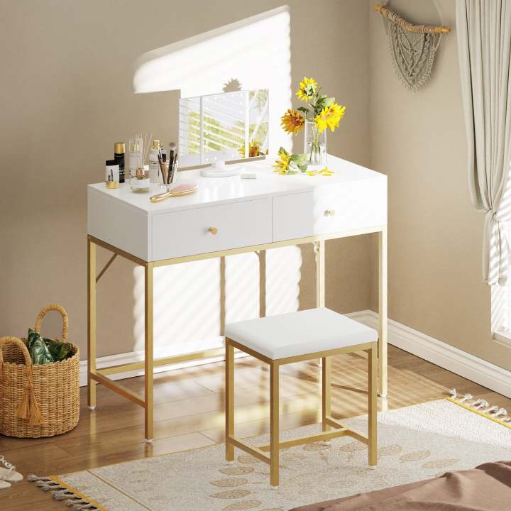 Jaree Vanity Dressing Drawers Home Office Desk Table With Stool customized