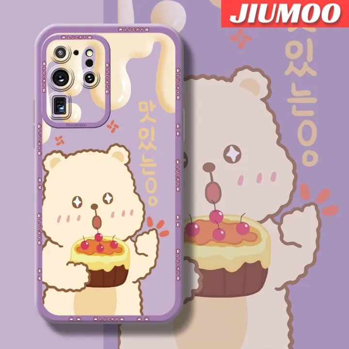 JIUMOO Case For Samsung S20 Ultra Case Fashion Cartoon Cream Bear Thin Shockproof Square Edge Silicone Casing Full Cover Camera Protect Cases Softcase