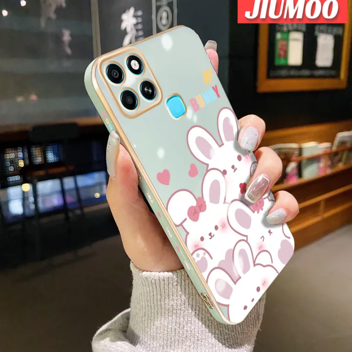 JIUMOO For Infinix Smart 6 HD Smart 6 Plus Smart 7 Case Cartoon Cute Bunny Luxury Plating Phone Cases New Square Edge Pattern Silicone Soft Casing Camera Lens Protection Shockproof Cover