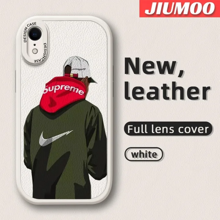JIUMOO For iPhone Xr Case Fashion Cool Tide Men Thin New Design Leather Soft Back Cover Camera Protection Cases Shockproof Casing