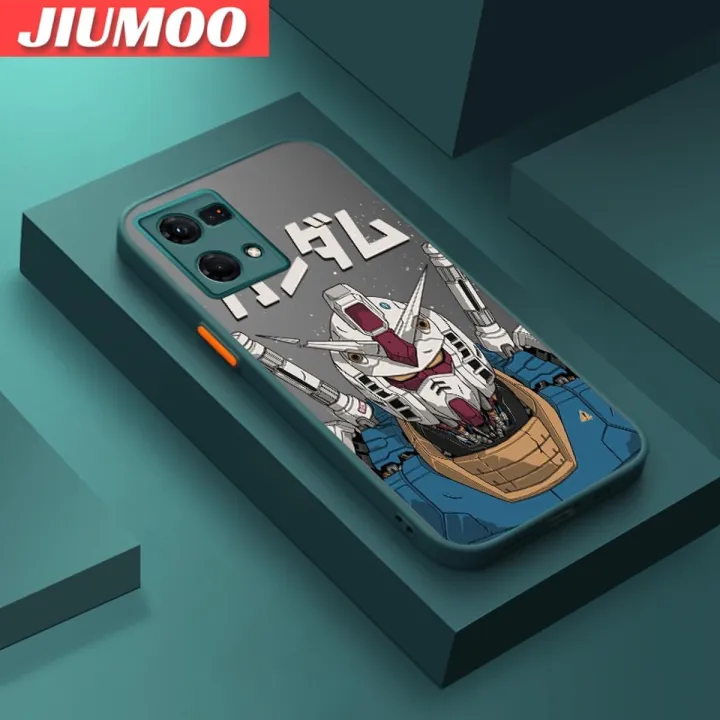JIUMOO For OPPO Reno 7 4G OPPO F21 Pro 4G Case Cartoon Cute Gundam Frosted Transparent Back Cover Lens Camera Protect Phone Case Edge Full Cover Casing Hard Cases