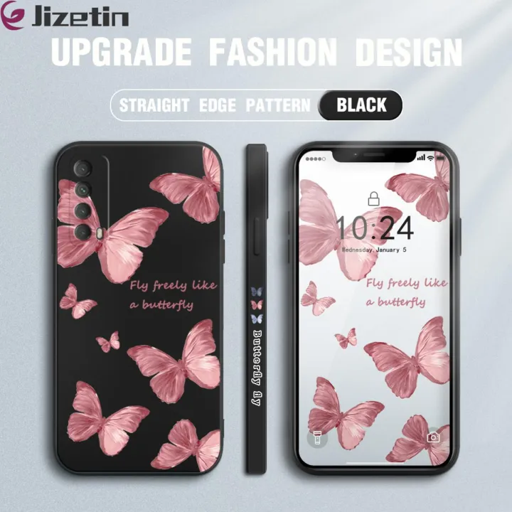 Jizetin for Huawei Y7A Back Cover Butterfly Flying Side Design Cases Soft Liquid Silicone Mobile Phone Case