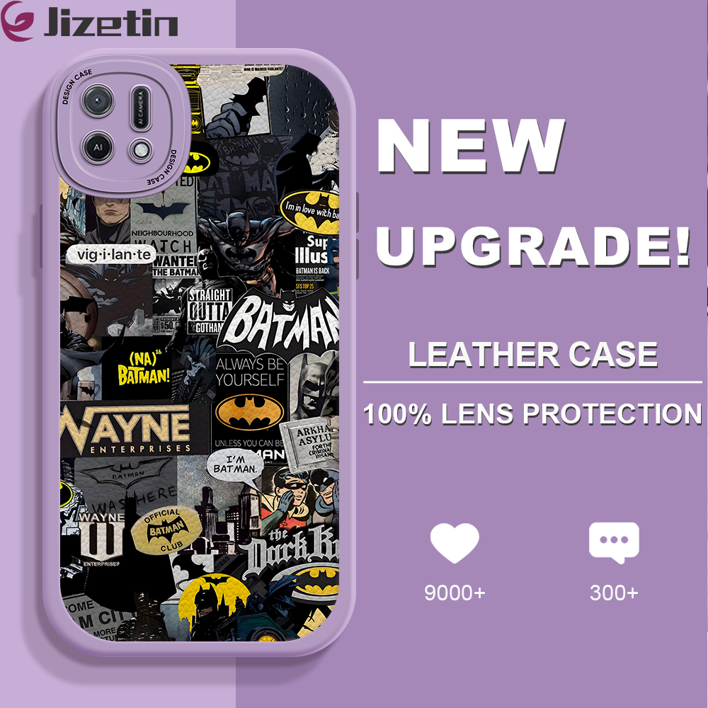 Jizetin for OPPO A16E A16K Back Cover Batman Lambskin Texture PU Leather Back For Girls Boys Soft Phone Case
