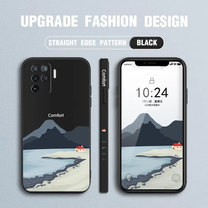 Jizetin for OPPO F19 Pro / A94 Case Mount Fuji Design Side Design Phone Case Square Edge Pattern Liquid Silicone Cases Full Cover Camera Shockproof Protective Case