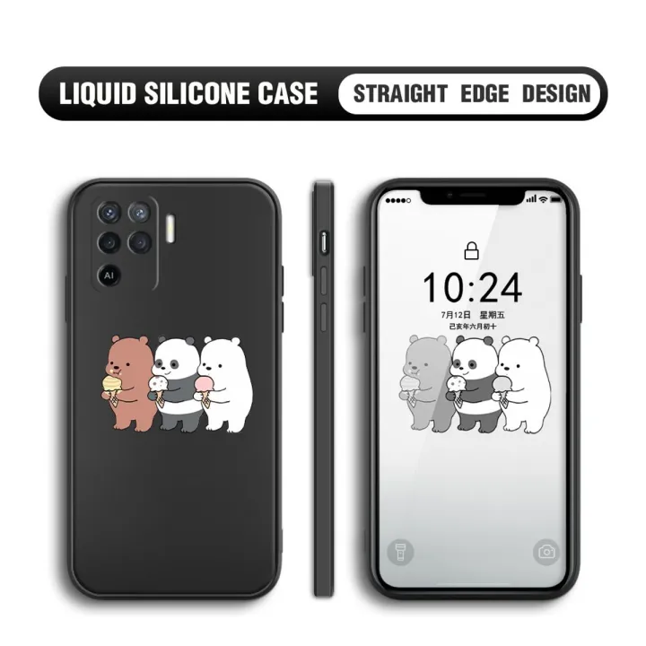 Jizetin for OPPO F19 Pro / A94 / Reno 5F / Reno 5 Lite Back Cover Cute Bare Bears and Cone Multicolor Liquid Silicone Phone Case Soft Square Lens Protection Phone Cases