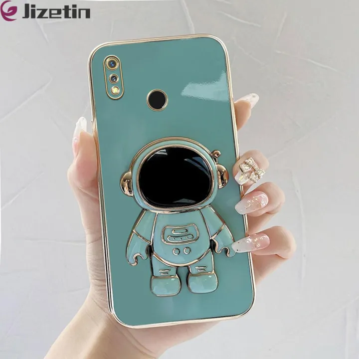Jizetin for Realme 3 Back Cover With Astronaut Folding Holder Luxury 6D Plating Case Soft Silicone Bracket Phone Cases