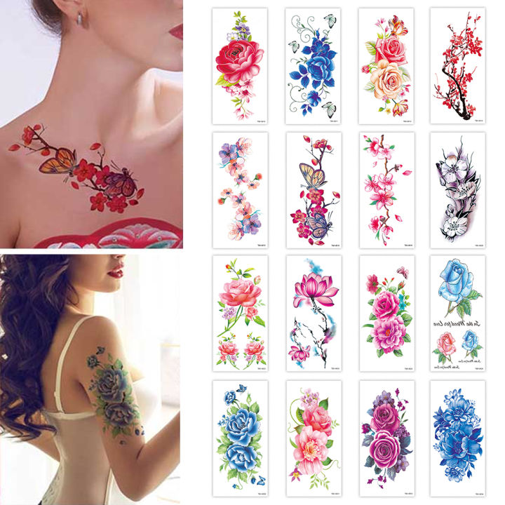 JM 3D Rose Flower Tattoo Stickers Waterproof Temporary Women Summer Arm Shoulder Flowers Stickers