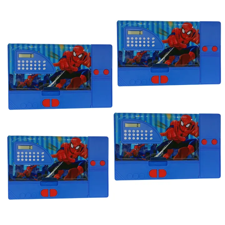 Jumbo Geometry Pencil Box Pack of 4 for Kids spider man geometry box with calculator Pack of 4 for boys box in Blue color