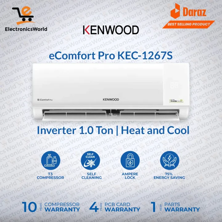 KENWOOD 1 Ton AC e-Comfort Pro Inverter Model KEC-1267S-Ampere Lock Feature (T3 Compressor) 75% Energy Efficient With 10 Years Compressor and 4 Years PCB Card Warranty